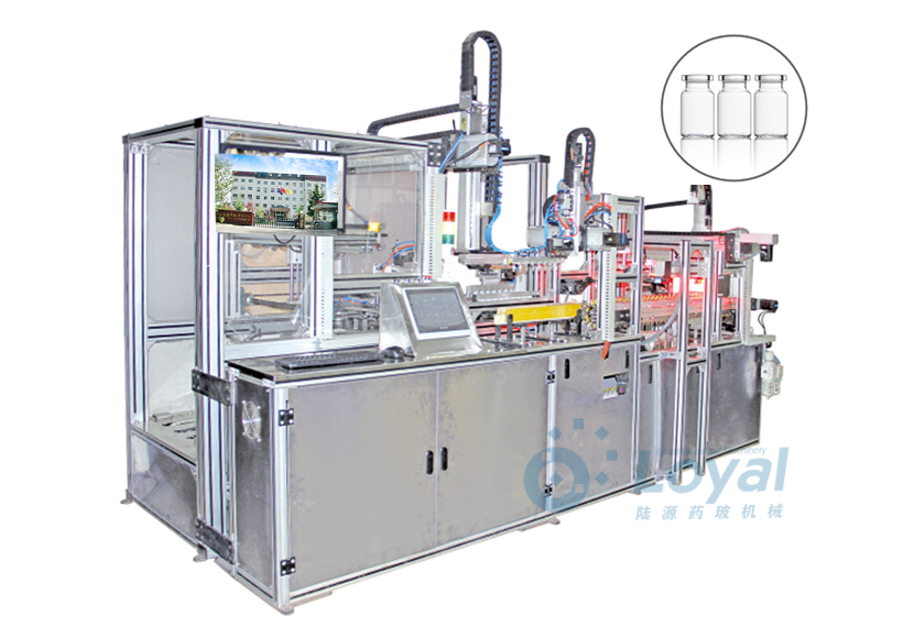 西林瓶生產(chǎn)線包括:自動(dòng)上管、自動(dòng)成型、經(jīng)機(jī)械手轉(zhuǎn)換至前端檢測(cè)線(也叫生產(chǎn)管控)、檢測(cè)線檢測(cè)的項(xiàng)目:1、瓶口內(nèi)外徑 2、瓶身長(zhǎng)短 3、瓶身外徑 4、瓶口邊厚 5、瓶底內(nèi)凹尺寸檢測(cè);經(jīng)檢測(cè)后的合格品再用機(jī)械手夾盤轉(zhuǎn)換至退火爐網(wǎng)帶上,經(jīng)高溫減除應(yīng)力后再降溫,通過氣動(dòng)吸盤將回火后的小瓶轉(zhuǎn)換至后端檢測(cè)線,后端檢測(cè)(也是重檢也叫終檢),經(jīng)后端拍照檢測(cè)項(xiàng)目